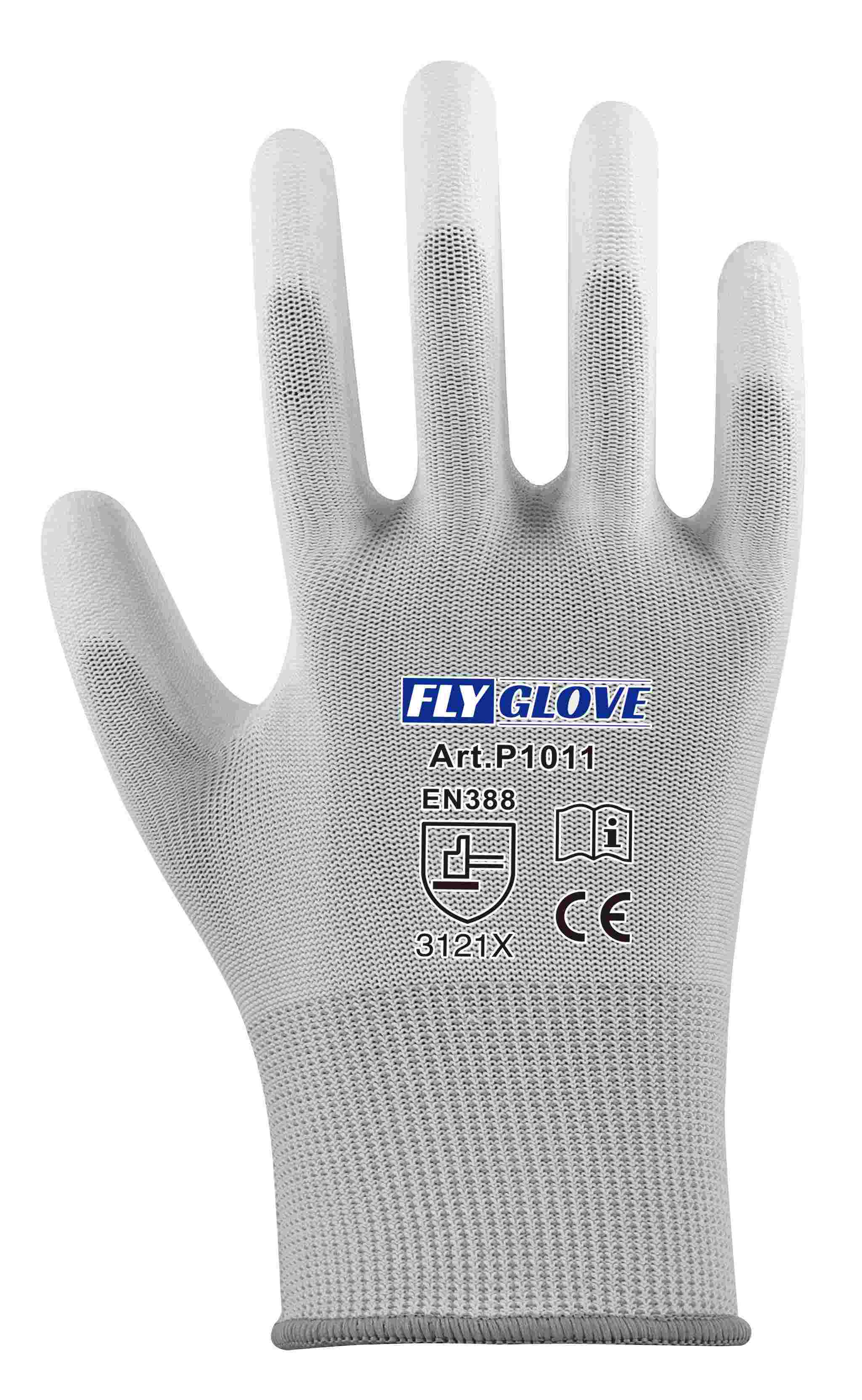 13G polyester liner, PU palm coating.